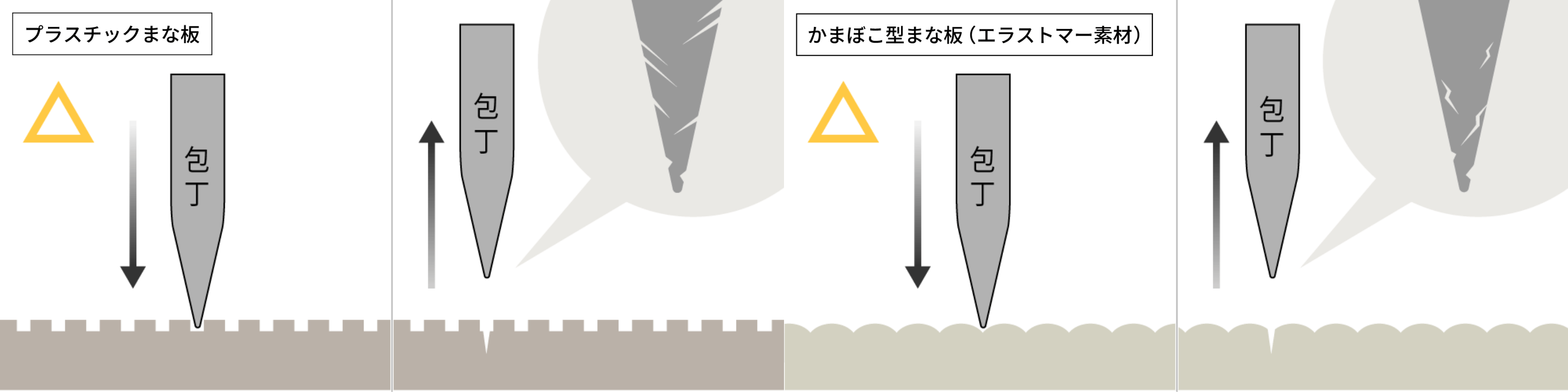 凹凸形状のプラスチックや安価なゴム製の硬いまな板は、切る際に摩擦抵抗を生じさせ、包丁の劣化を急速に早めてしまいます。
