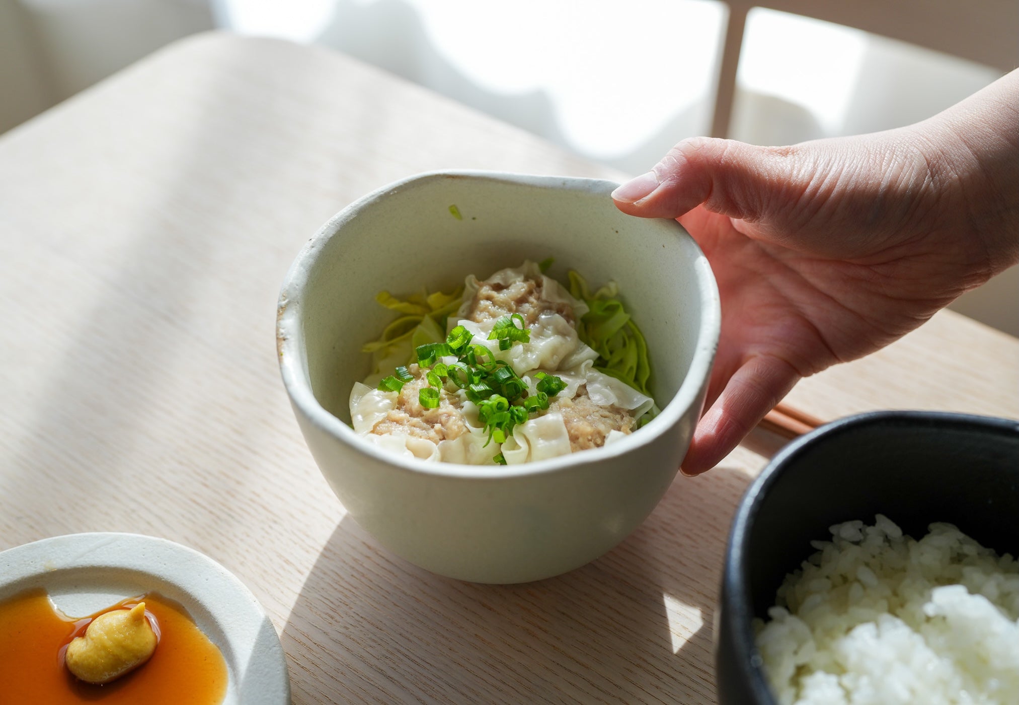 蒸美椀(むすびわん)の特徴である窪みは、様々な便利な使い方があります。