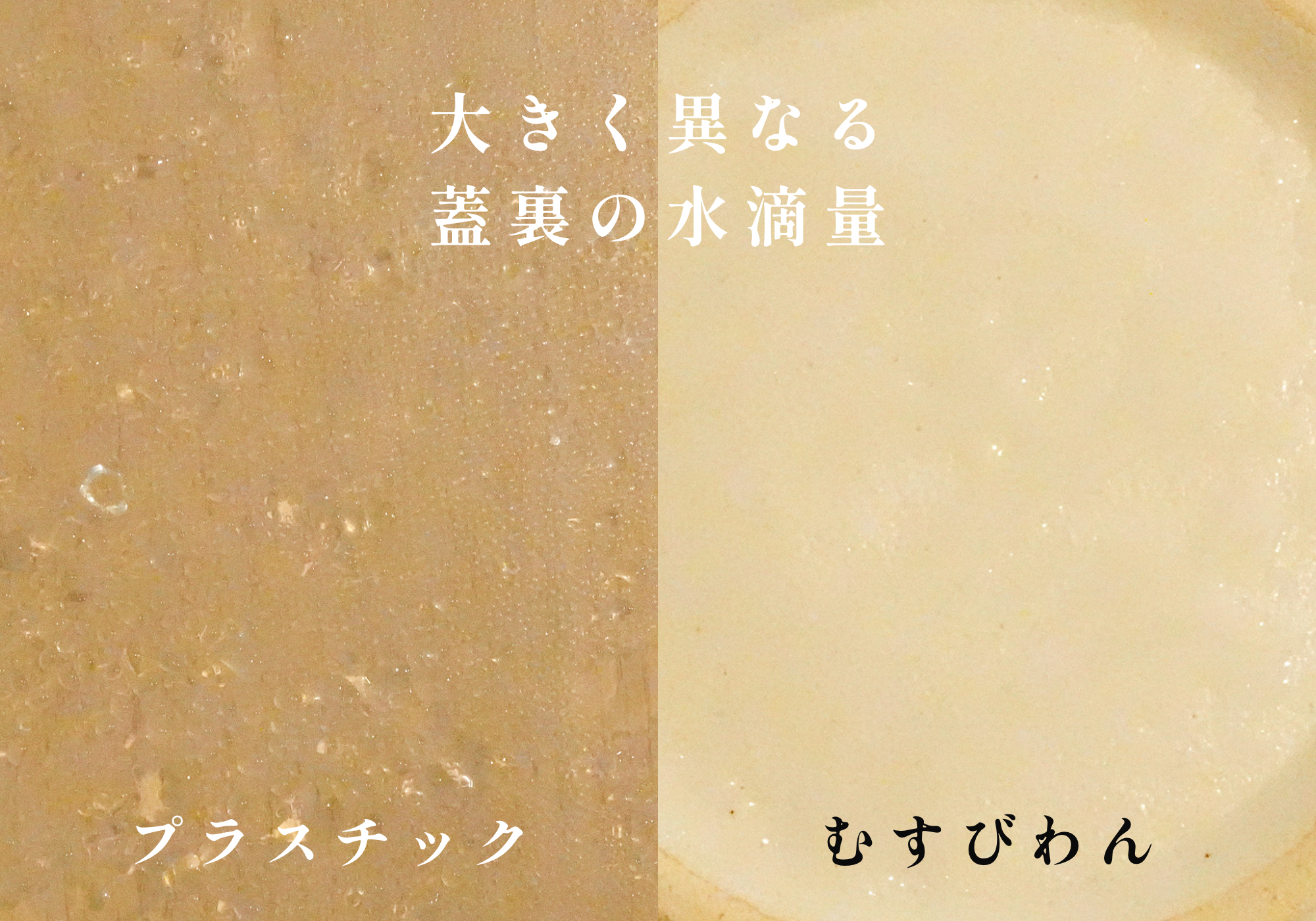一方、蒸美椀(むすびわん)の蓋裏にはほとんど結露が見られませんでした。これは伊賀土の無数の気孔が、容器内の余分な水蒸気を吸収するため。